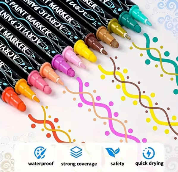 Akrylové fixy fungují skvěle na všech druzích povrchů, jako je papír, plátno, dřevo, keramika, sklo, kov, kámen, plasty a další.