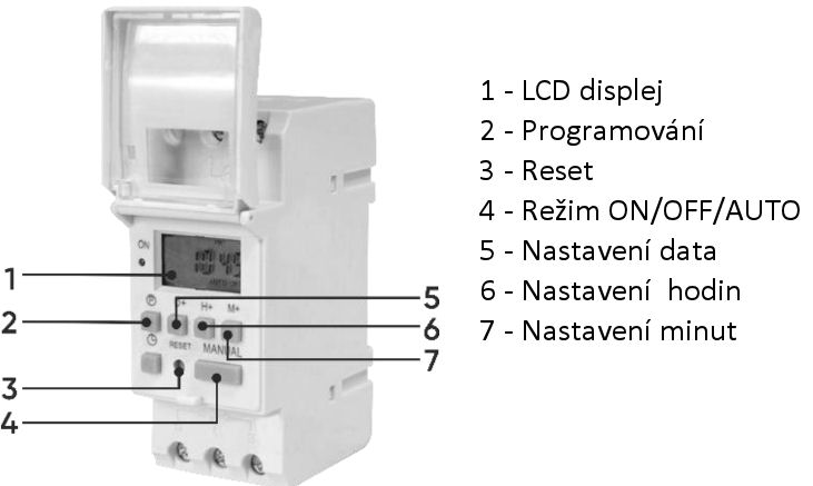 16 programů pro sepnutí a vypnutí. Nastavený program se může opakovat každý den nebo v určený den v týdnu.