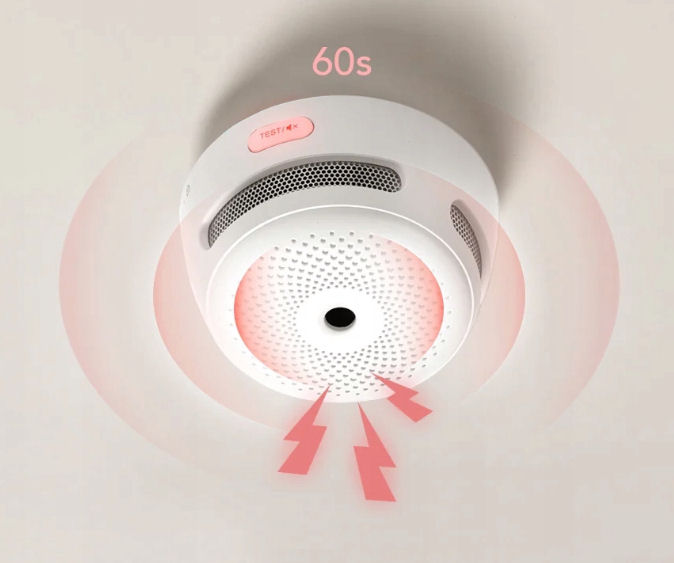 V případě detekce kouře spustí hlasitý alarm o výkonu 85 dB a odešle upozornění na smartphone, což umožňuje vzdálenou reakci.