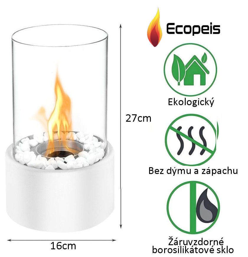 Stolní krb Ecopeis® Kvitfjell používá jako palivo bioetanol, které nezapáchá ani neprodukuje kouř, nevypouští žádné nebezpečné látky, není třeba větrat a tím je ideální i na zimní večery.