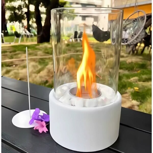Stolní krb Ecopeis® Kvitfjell je robustní a elegantní stolní krb z práškově lakované oceli se skleněným cylindremMinimalistický severský design je nadčasový a hodí se do každého prostoru.