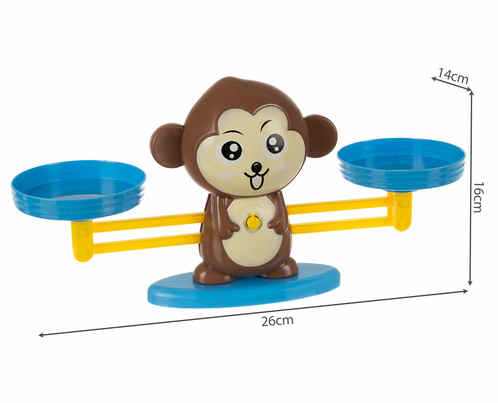 Tato roztomilá vzdělávací hračka naučí děti hravou metodou základům matematiky.Sada obsahuje váhu s motivem opice, malé opičky jako závaží, čísla a karty s matematickými úlohami.